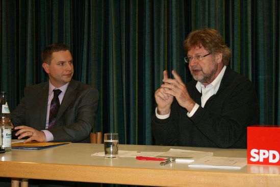 Als Referenten mit dabei war nicht nur der Spitzenkandidat der SPD Baden-Württemberg und finanzpolitische Sprecher der SPD-Landtagsfraktion Dr. Nils Schmid MdL sondern mit Prof. Dr. Michael von Hauff von der TU Kaiserslautern ein Volkswirtschaftler, der sich insbesondere mit nachhaltiger Entwicklung beschäftigt. Dementsprechend regte Matthias Tröndle gleich zur Einleitung zum Nachdenken darüber an, „ob denn das Wachstum des Bruttoinlandsprodukts überhaupt Auskunft über die Lebensqualität der Menschen im Land gibt.“ Matthias Tröndle forderte, dass auch Nachhaltigkeit, Bildung und soziale Teilhabe in einen Fortschrittsindikator eingehen müssten.